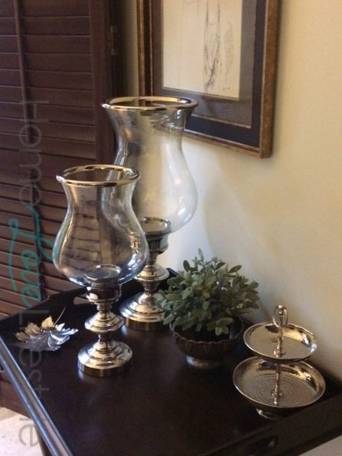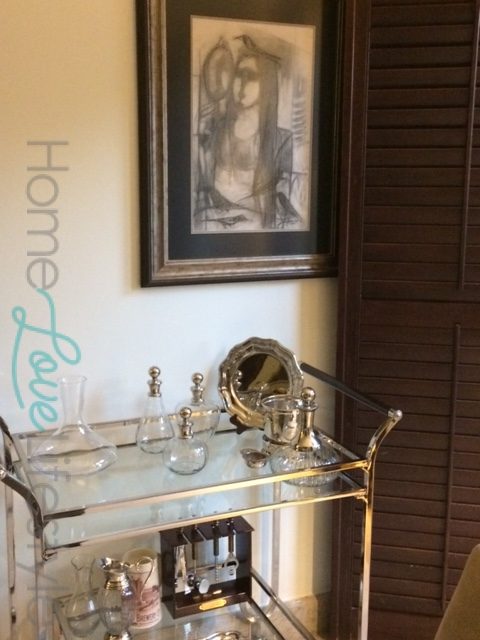A butlers table in one corner and a silver and glass tea trolley provide extra options for entertaining.